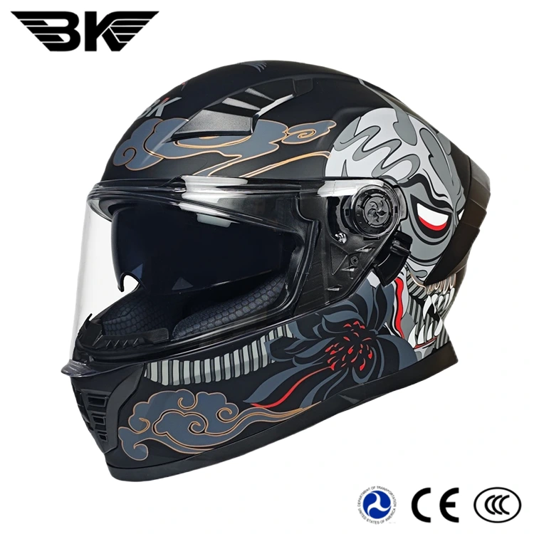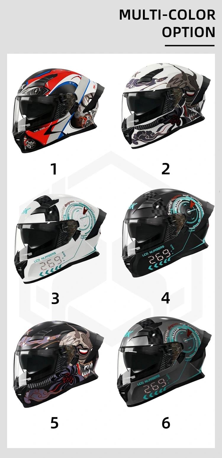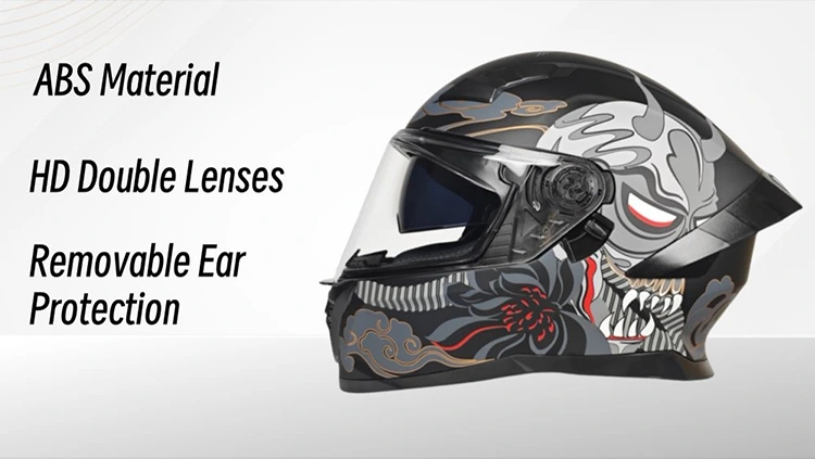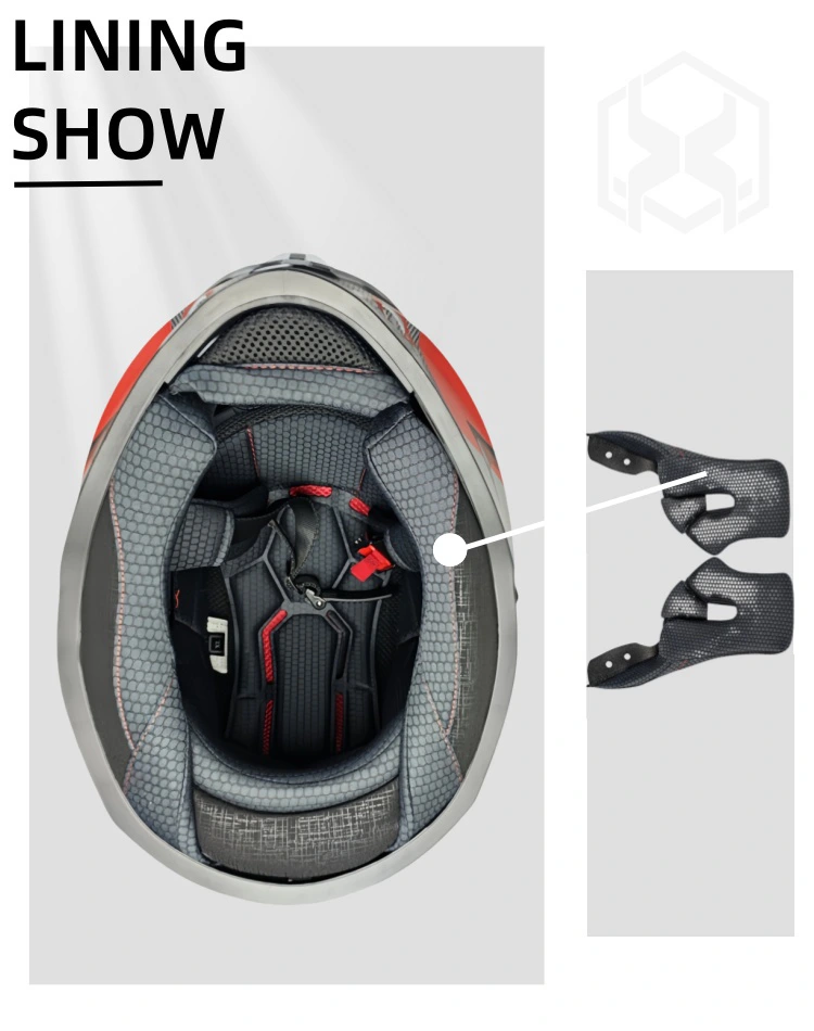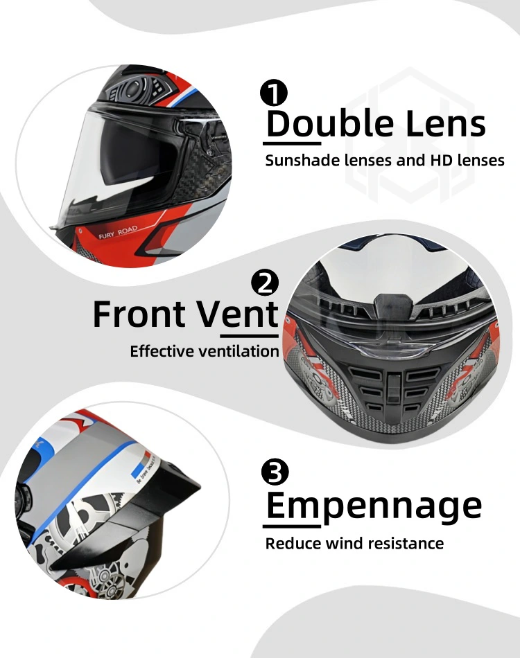 1.Double lenses Full face motorcycle helmets’ liner features a fully removable design. The inner liner is fully removable—wear the helmet all year round, and wash the liner easily without any hassle. The quick-dry fabric means it won’t hold you back from riding for long.