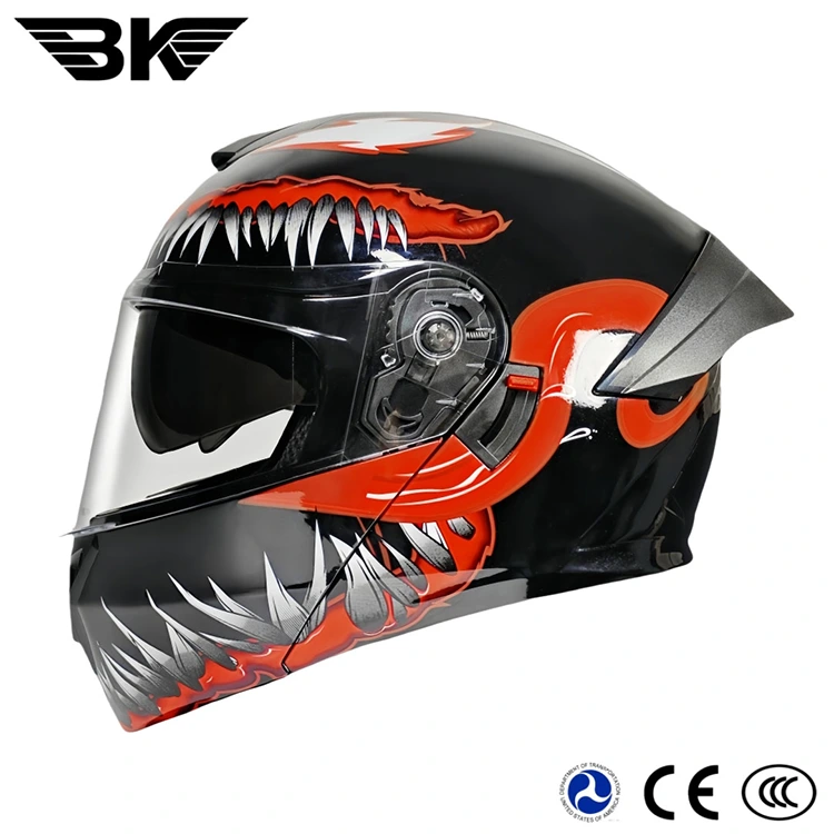 The ABS Modular Helmets, one representative product of Ningde Chief Pigeon Technoligy Co.Ltd which engineered for maximum safety and comfort during long-distance travel. The helmet features aerodynamic, with a removable rear spoiler which aerodynamic design effectively reduces wind resistance, enhancing stability during high-speed riding. Its thick inner lining includes detachable ear pads. An advanced flip-up mechanism allows easily transition between full-face and open-face modes. The dual-sided lens design enables switching between clear and tinted lenses. It’s High-quality ABS shell material and EPS graphite buffer layer provide enough safety. This helmet meets stringent DOT certification standards.