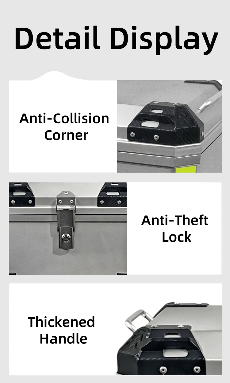 (1)ABS Motorcycle Tail Boxes Anti-theft lock has Stainless steel anti-theft lock design, pry-resistant and corrosion-resistant, effectively enhancing the security of stored items.