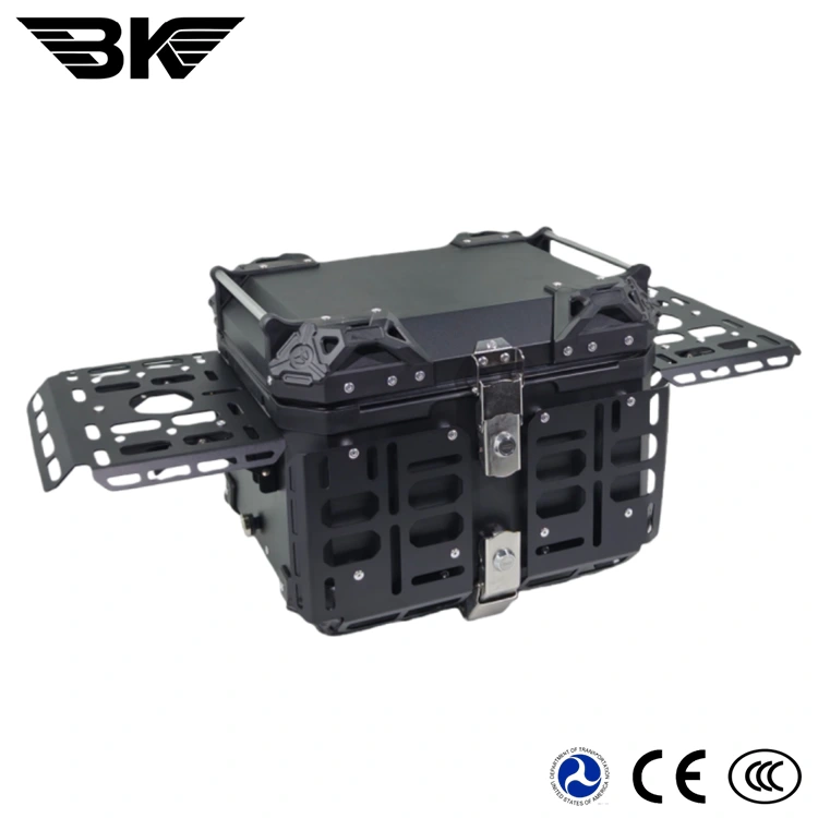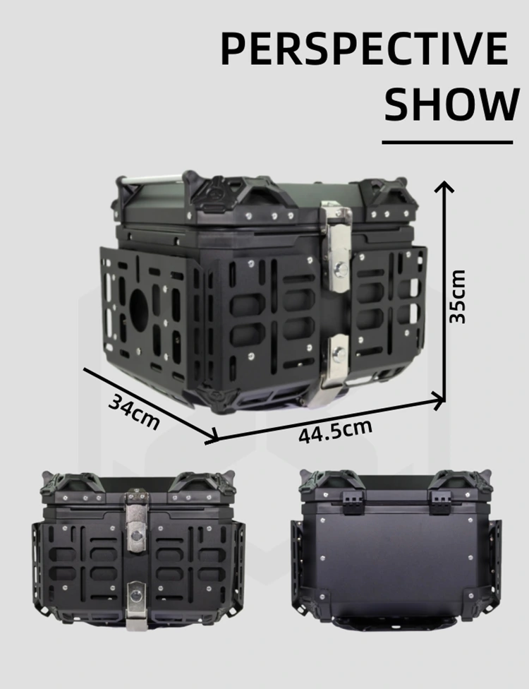 manufacturer and supplier of motorcycle parts located in China. As a leader in motorcycle accessory with over than 16 years of dedicated experience, our factory has ISO certified. We provide motorcycle tail boxes with factory price and high quality.This motorcycle tail box is made of aluminium material, which is wear-resistant and protects the goods inside from damage. There are also multiple options available, including matching the base plate and lining. The capacity fully accommodates your daily needs.