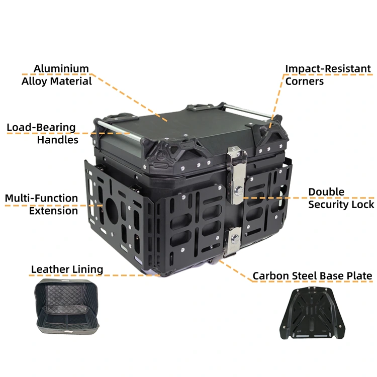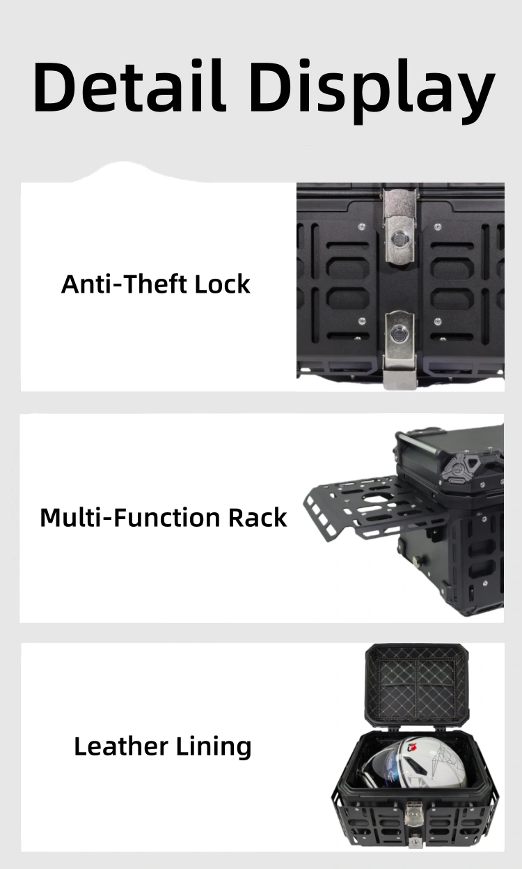 Aluminium Motorcycle Tail Box Leather lining protects the goods from scratches, and the versatile expansion design allows for flexible storage more items.
