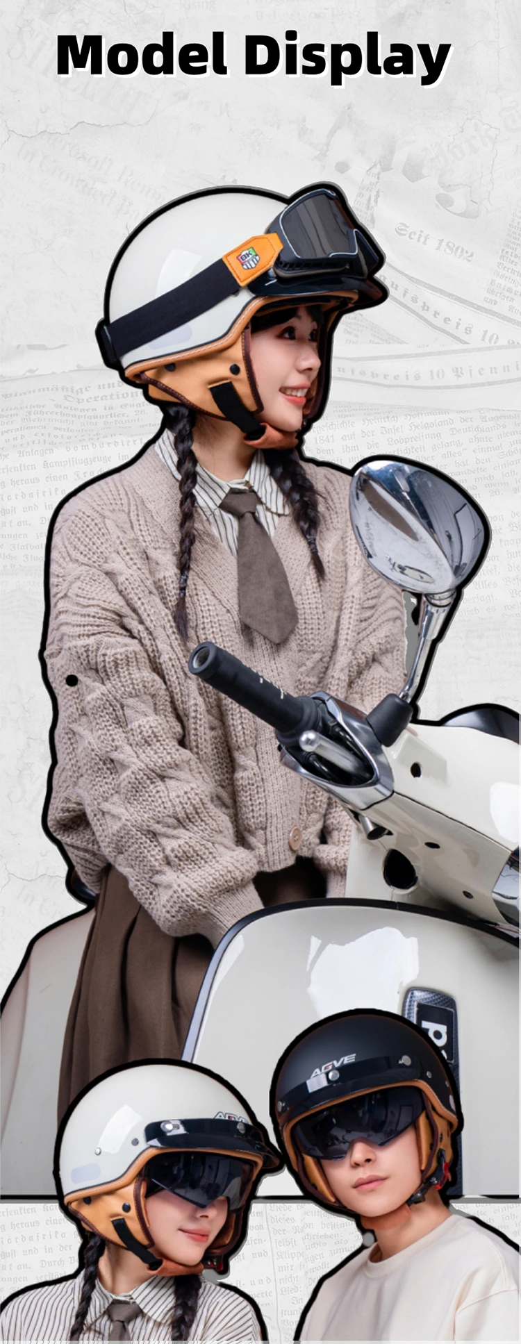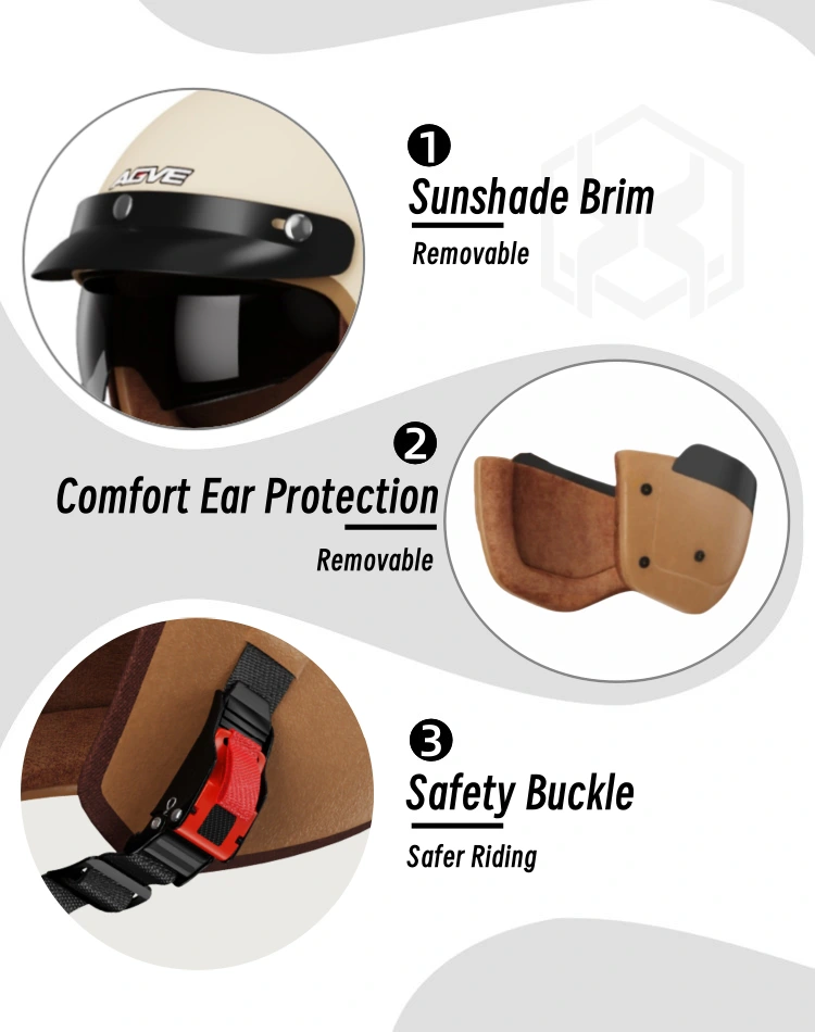 What is the Retro helmet?Half face helmet retro`s shell is full and rounded ,with smooth transitions between edge,unlike the sharp and flat design of modern helmets.First , its from the design philosophy ,simplicity without insignificance.