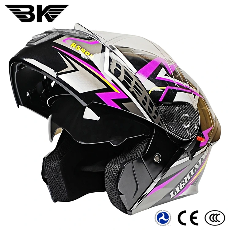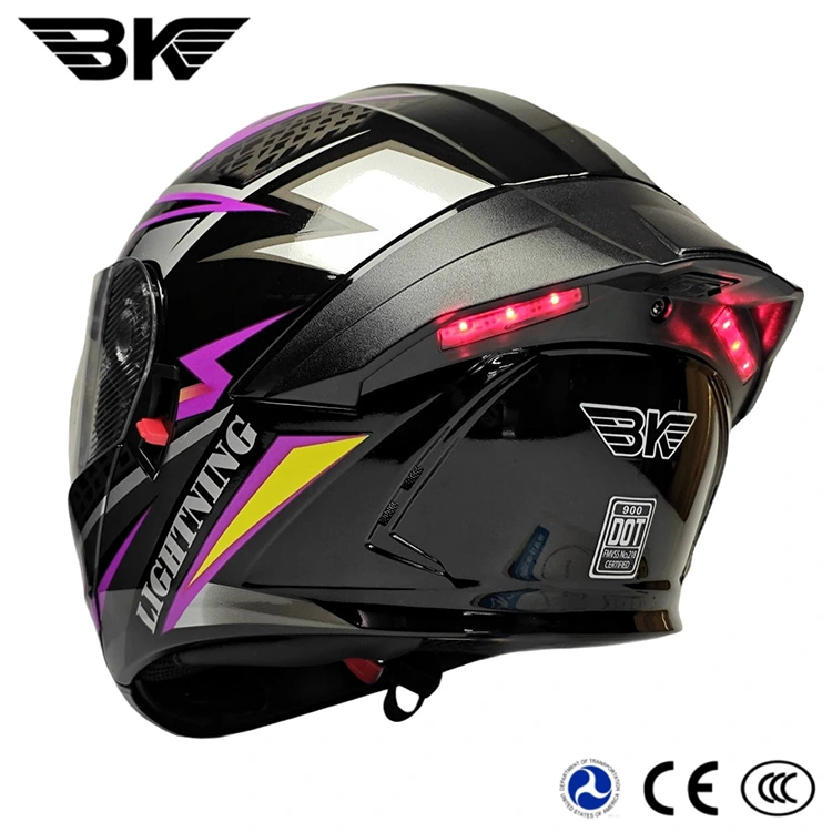 As abs LED taillight Modular Helmets, it features a high-performance flip-up system. The 180°flip-up design allows riders to effortlessly switch between full-face and open-face modes. Thestrap system employs a five-position buckle and adjustable rangethatensure anice fit with your head. We offer customizable large-area decal designs to suit diverse aesthetic preferences, also supportmultiple colors as shown below. Regarding price, even helmets with integrated taillights are offereda nice price and additional discounts available for bulk orders.