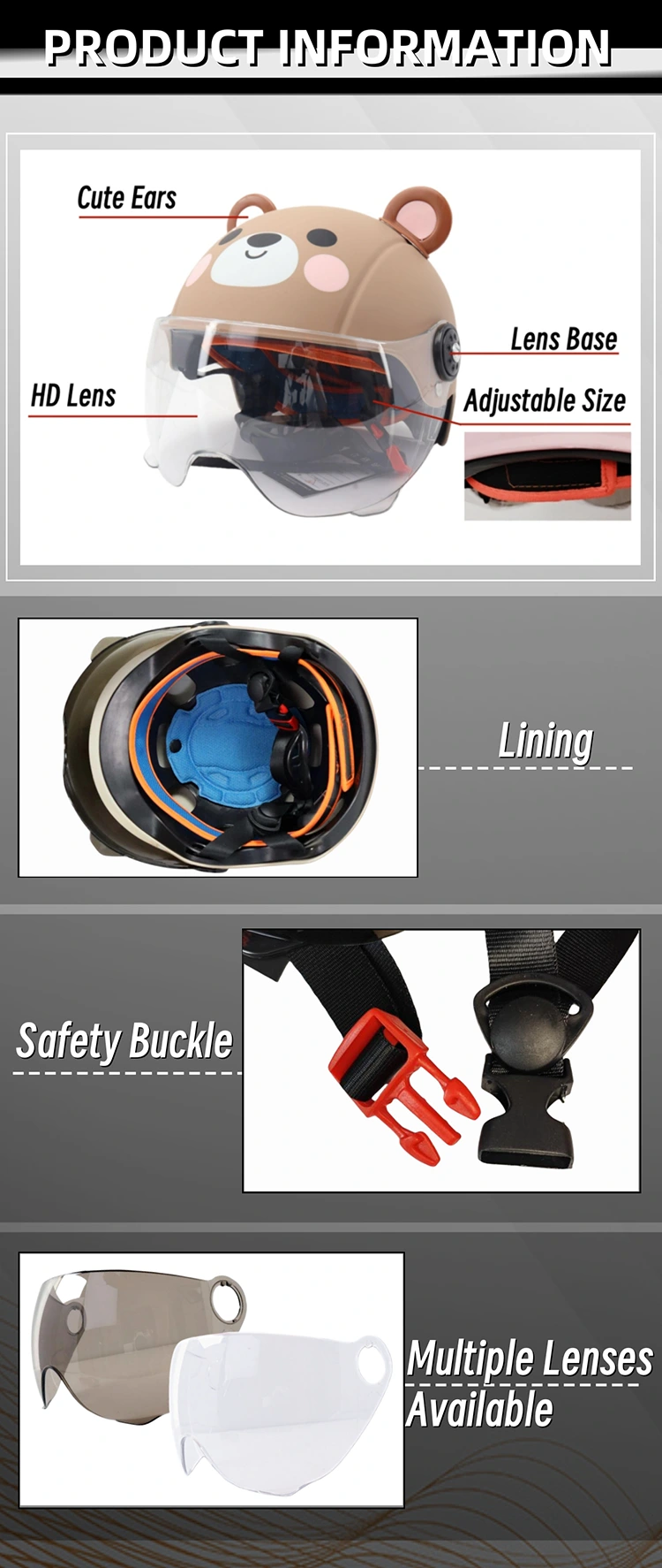 (2)Children Cute design helmet has Three-dimensional bear ears coupled with multiple cartoon styles to satisfy children's different aesthetic preferences, making children like to wear helmets.