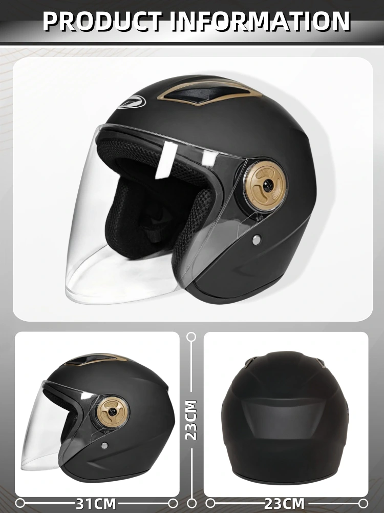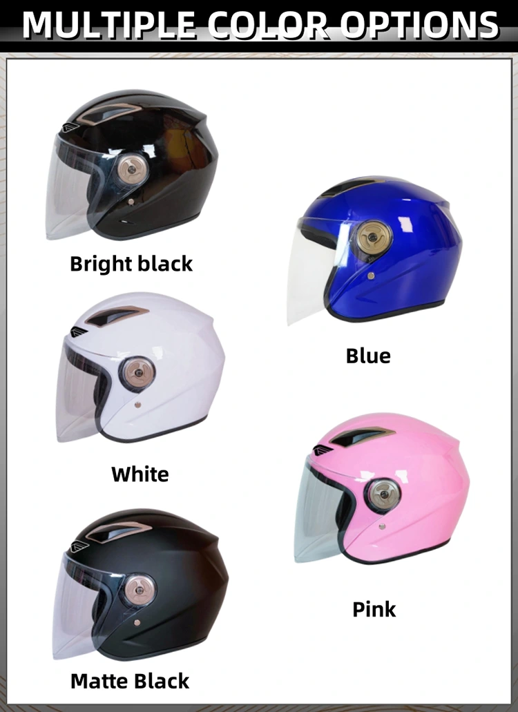 The Motorcycle Half Face Helmets, one of hot-selling products of Ningde Chief Pigeon Technoligy Co.Ltd which provides maximum safety and comfort for long-distance travel. This helmet has an aerodynamic design that provides better head protection and reduces wind resistance, thereby improving stability at high speeds. Wearing a thick pure cotton lining makes it more comfortable and breathable.The single HD visor design allows for clear vision while also providing wind protection. The lightweight ABS shell material and EPS cushioning layer provide ample safety. This helmet meets stringent production standards.