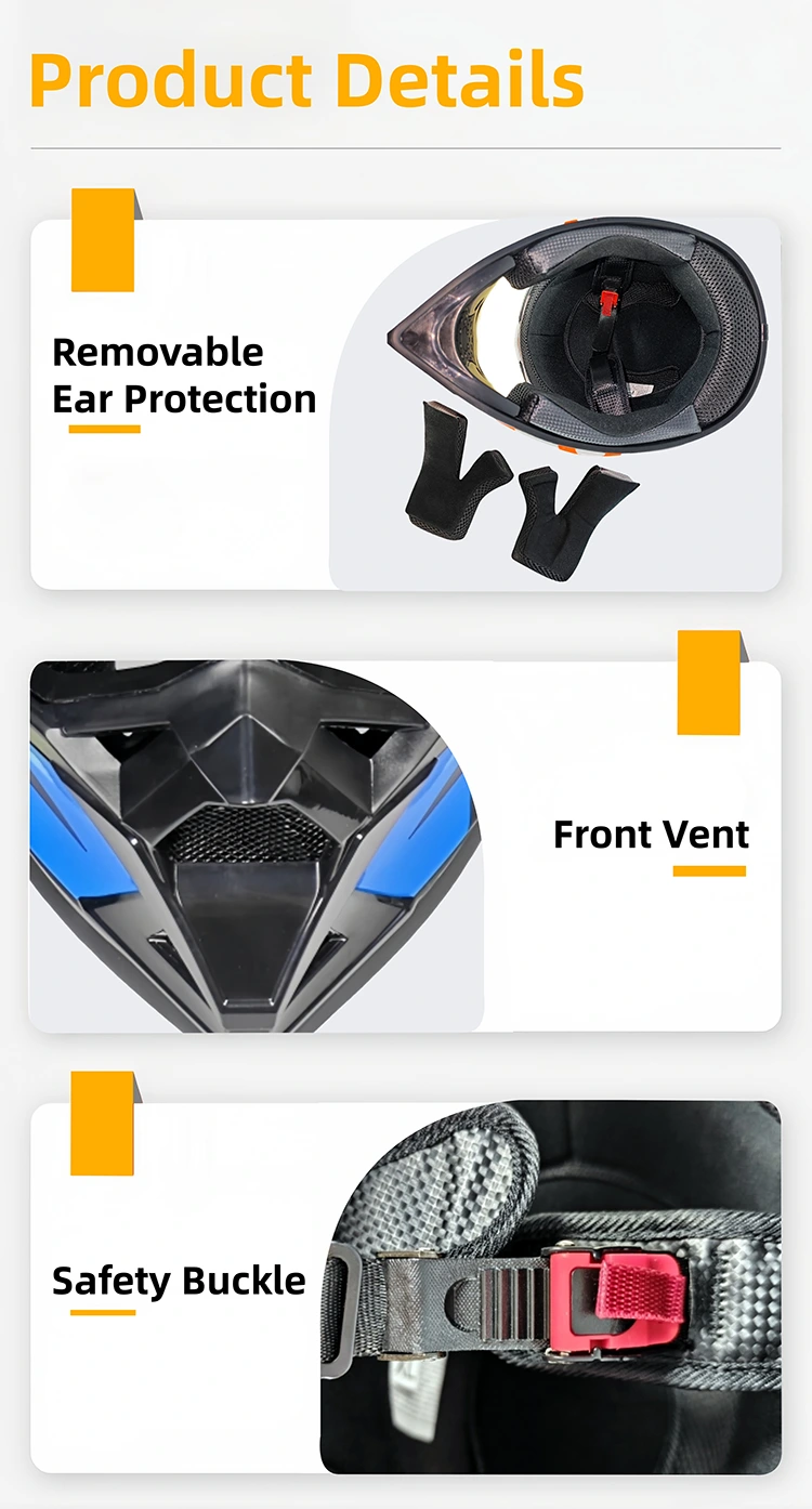 Ningde ChiefPigeon Technoligy Co., Ltd., as a professional helmet manufacturer with its own factory, is well aware of the challenges and demands of off-road cycling. This Motorcycle off-road Helmet is specifically designed for mountain motorcycles, forest highways, and other complex scenarios. Not only does it pass rigorous safety tests, it also takes into account practicality and personal expression in its details.. The eye-catching helmet design makes you highly recognizable in the wild, while the mature craftsmanship and modular design ensure a safe and comfortable ride every time.