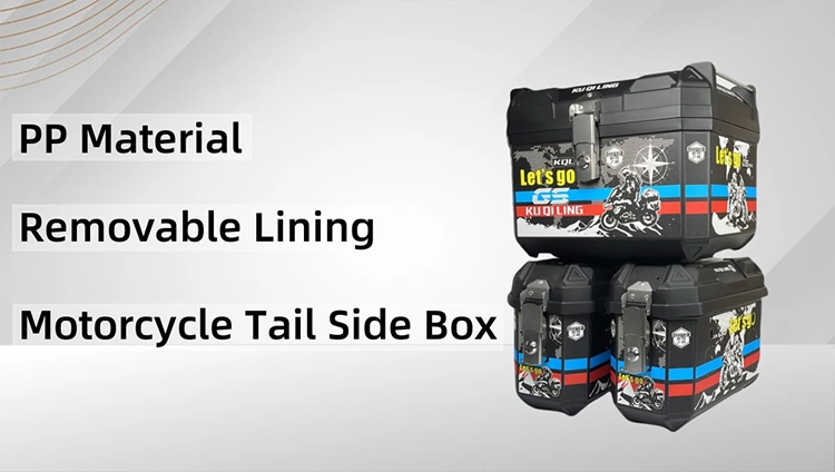 Our pp material Motorcycle side case is made from high-quality PP material that ensures impact resistance, weatherproof performance and long-term use. It can also keep your things safe from the weather.The set includes a box and two side boxes each with a lock to keep your things safe.The handle is very strong so you can carry it easily.You can also take out the lining.Wash it which makes it easy to clean.You can even customize the decals to make it look the way you want.