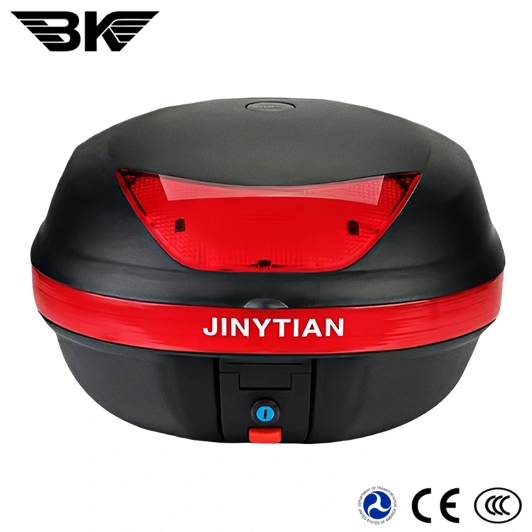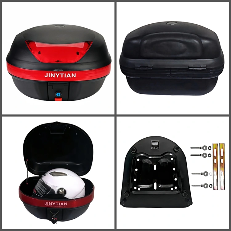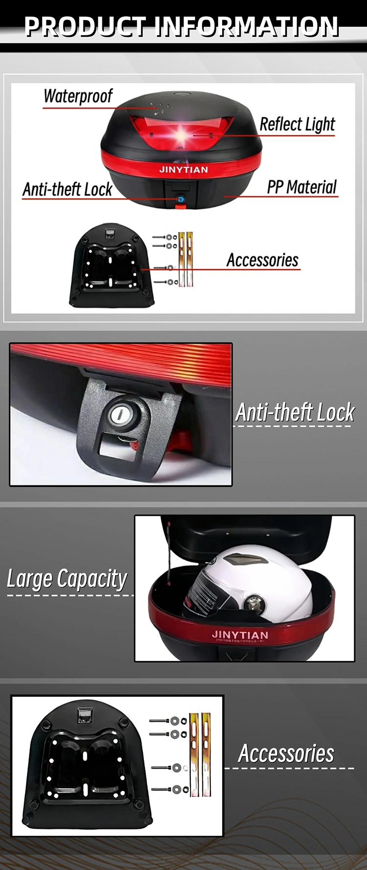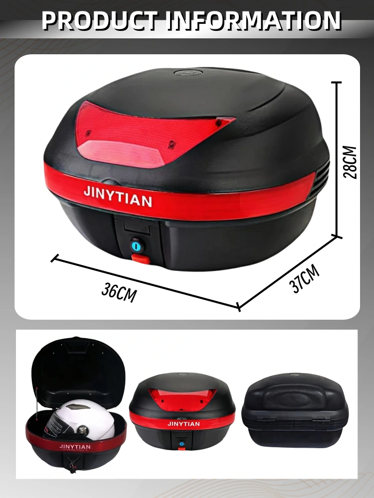Waterproof pp motorcycle top box comes with an anti‑theft lock to help keep your items secure. The large red reflective strip on the front will make your vehicle more visible at night or in low light, which helping you ride safer. The size of the box is 36×37×28cm, which inside has plenty of space for a helmet and other daily essentials, perfect for everyday use.