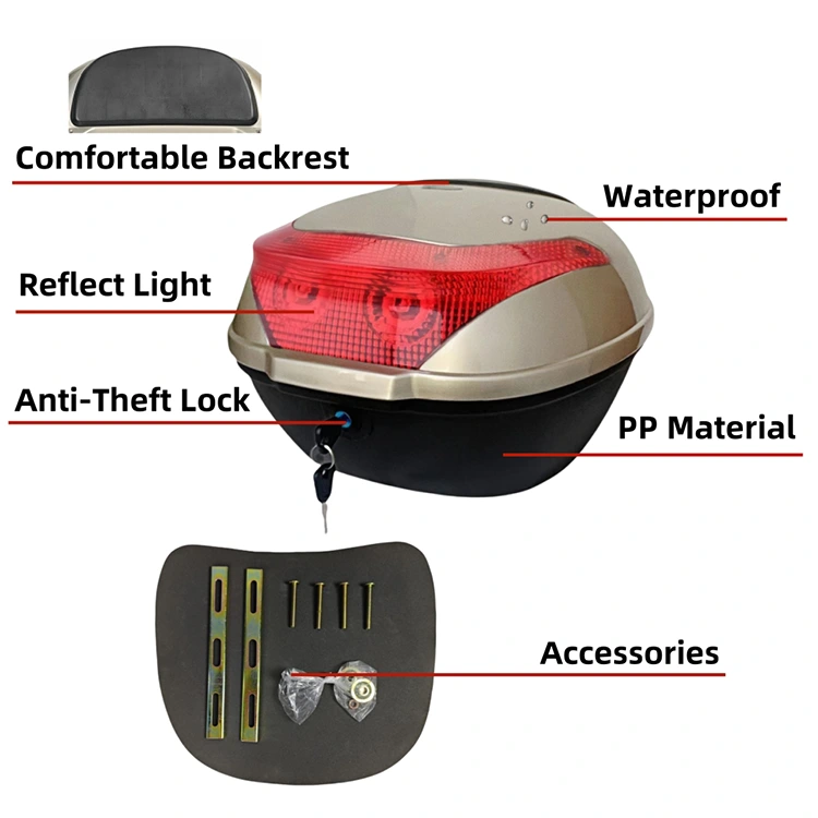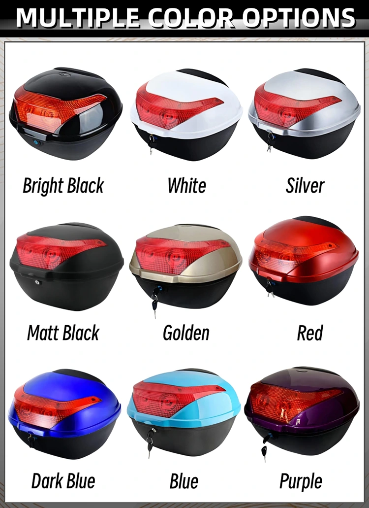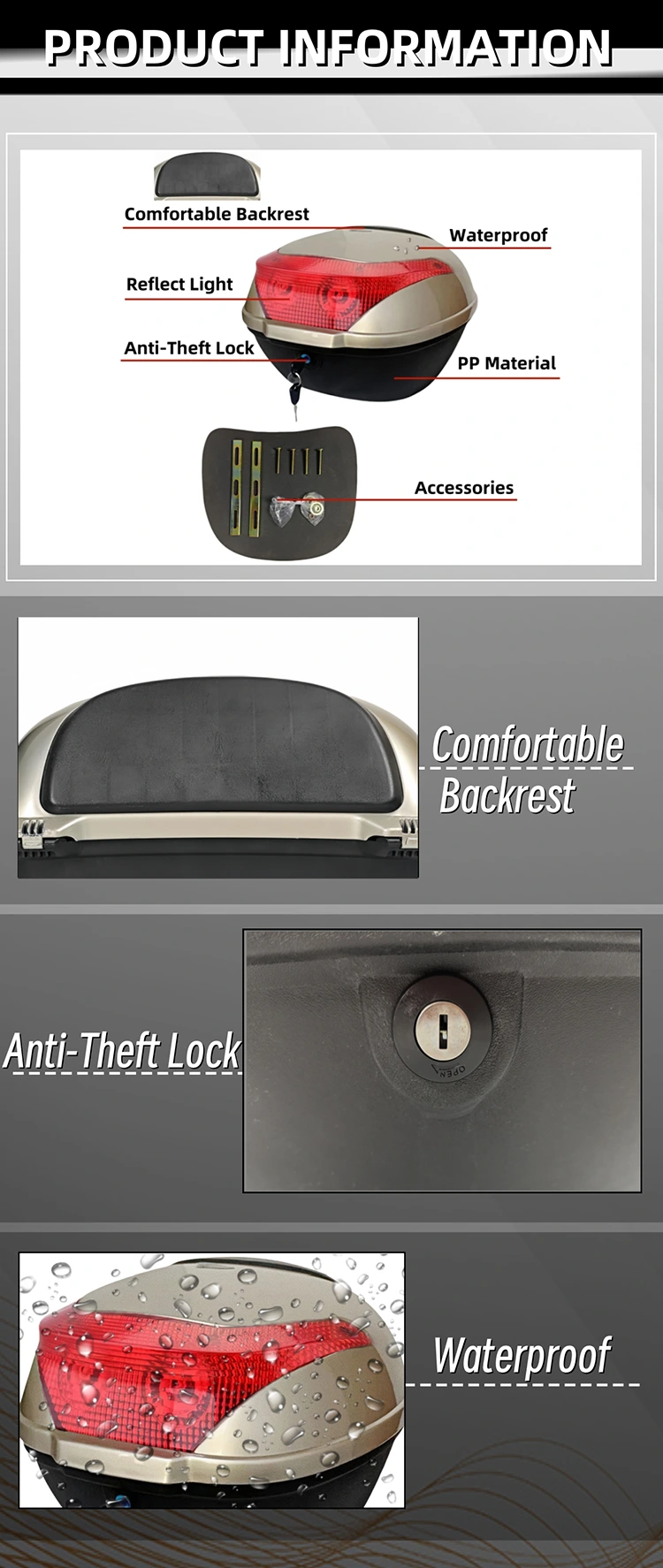 2. Equipped with anti-theft locks, the locking structure is stable and can effectively prevent the theft of items inside the box. After parking, helmets, documents, personal belongings, etc. can be safely stored;