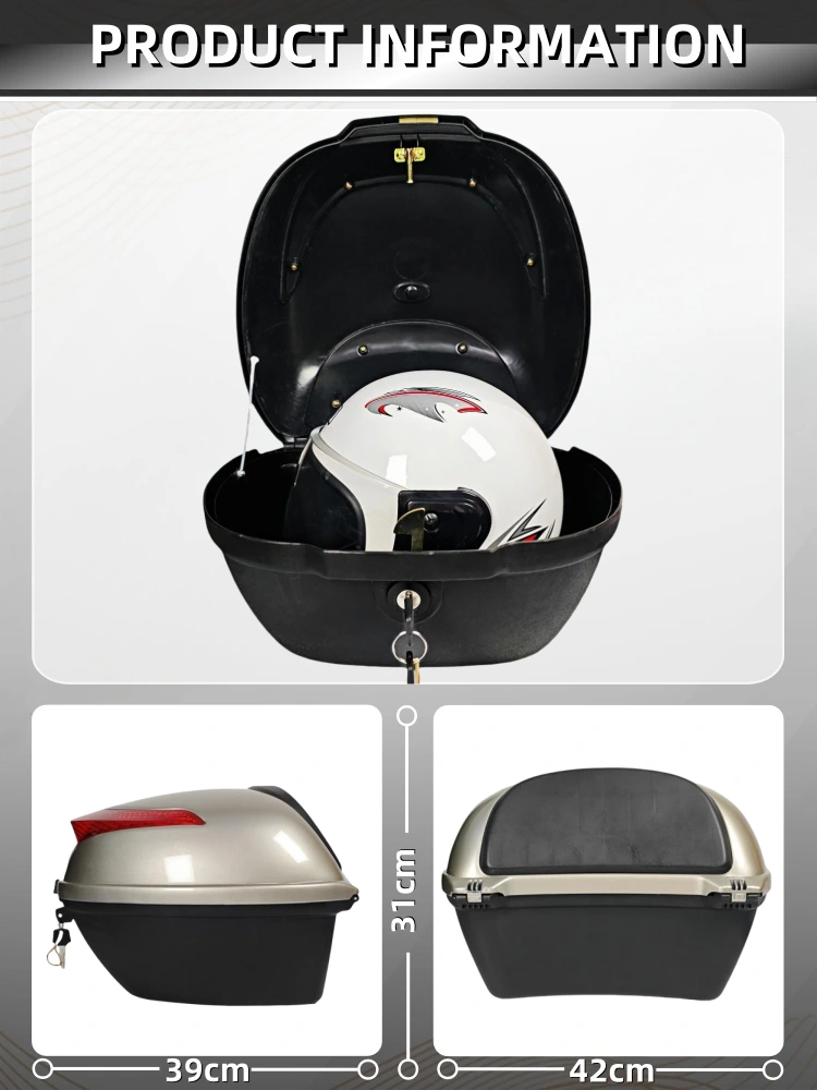 The PP Motorcycle trunk waterproof has a spacious interior space that can easily accommodate full-size motorcycle helmets which is meeting the storage needs of daily cycling. Additionly, the overall size is 42cm in length, 39cm in width, and 31cm in height. After installation, it does not affect the balance of the body and is suitable for most motorcycle models.