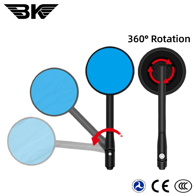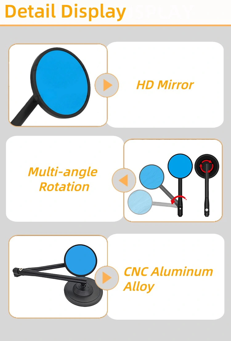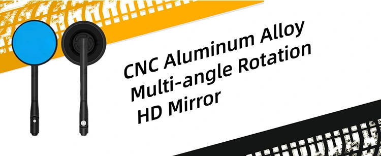 With CNC motorcycle rearview mirror round shape, it is both classic and suitable for the preferences of most clients. Modification and customization are supported, we provide water transfer printing, electroplating, and various colors to meet needs of different customers. The mirror can be adjusted in 360 degree rotation, making it adaptable to different usage scenarios.
